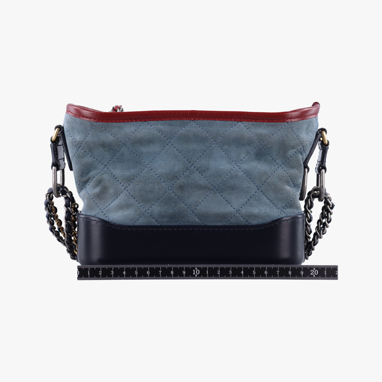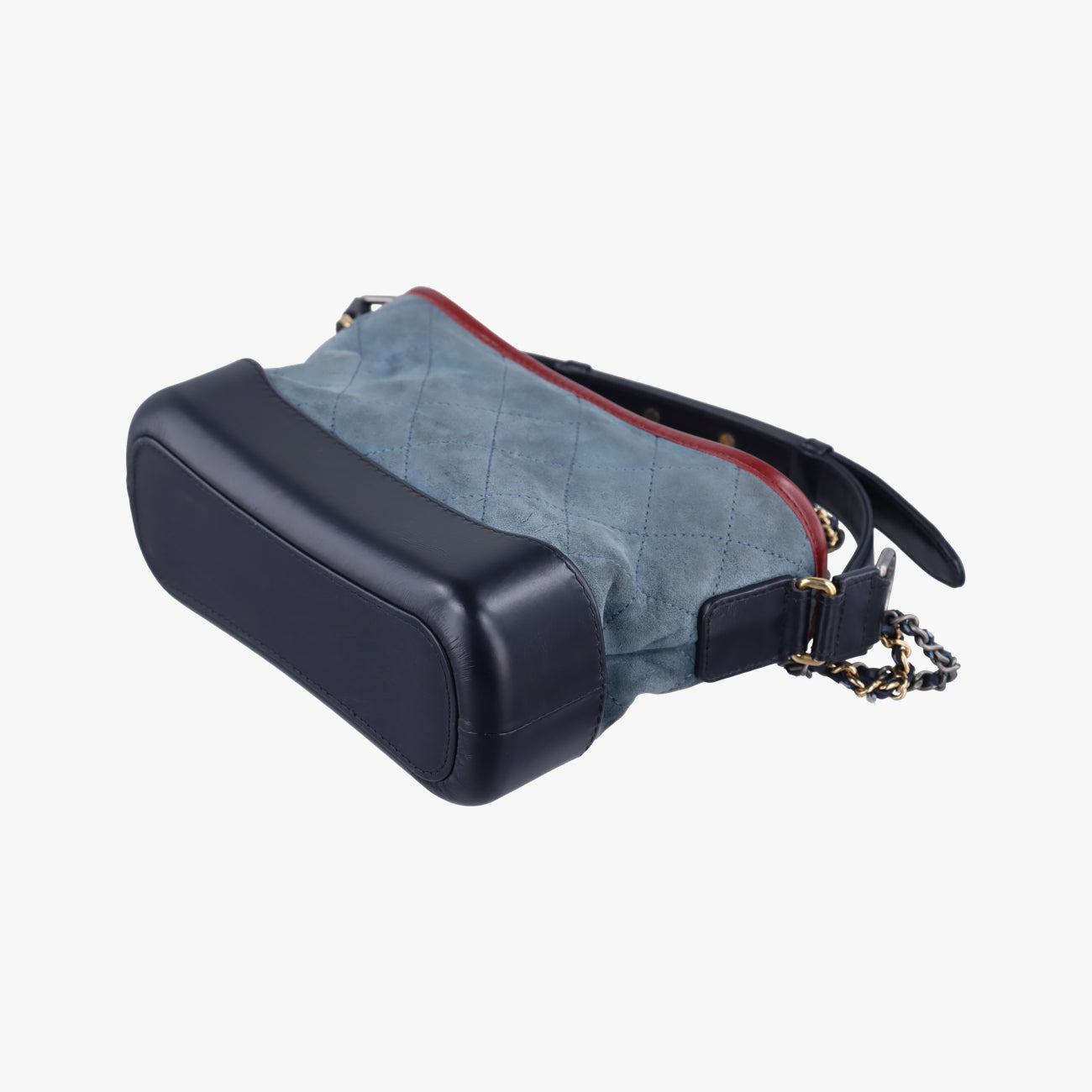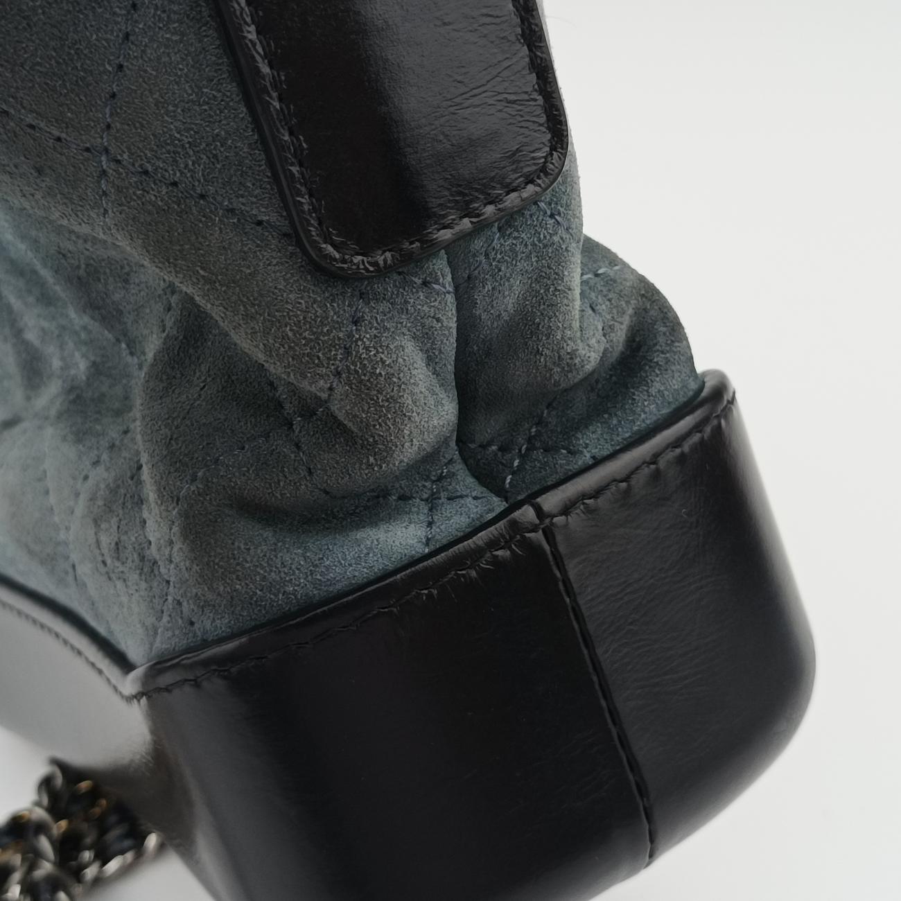 Overall mild usage traces; Mild scratches on the bottom cortex; Moderate wear and slight scratches on the suede body; Moderate wear of leather chains; Mild hardware wear and tear; Mild stains inside;
